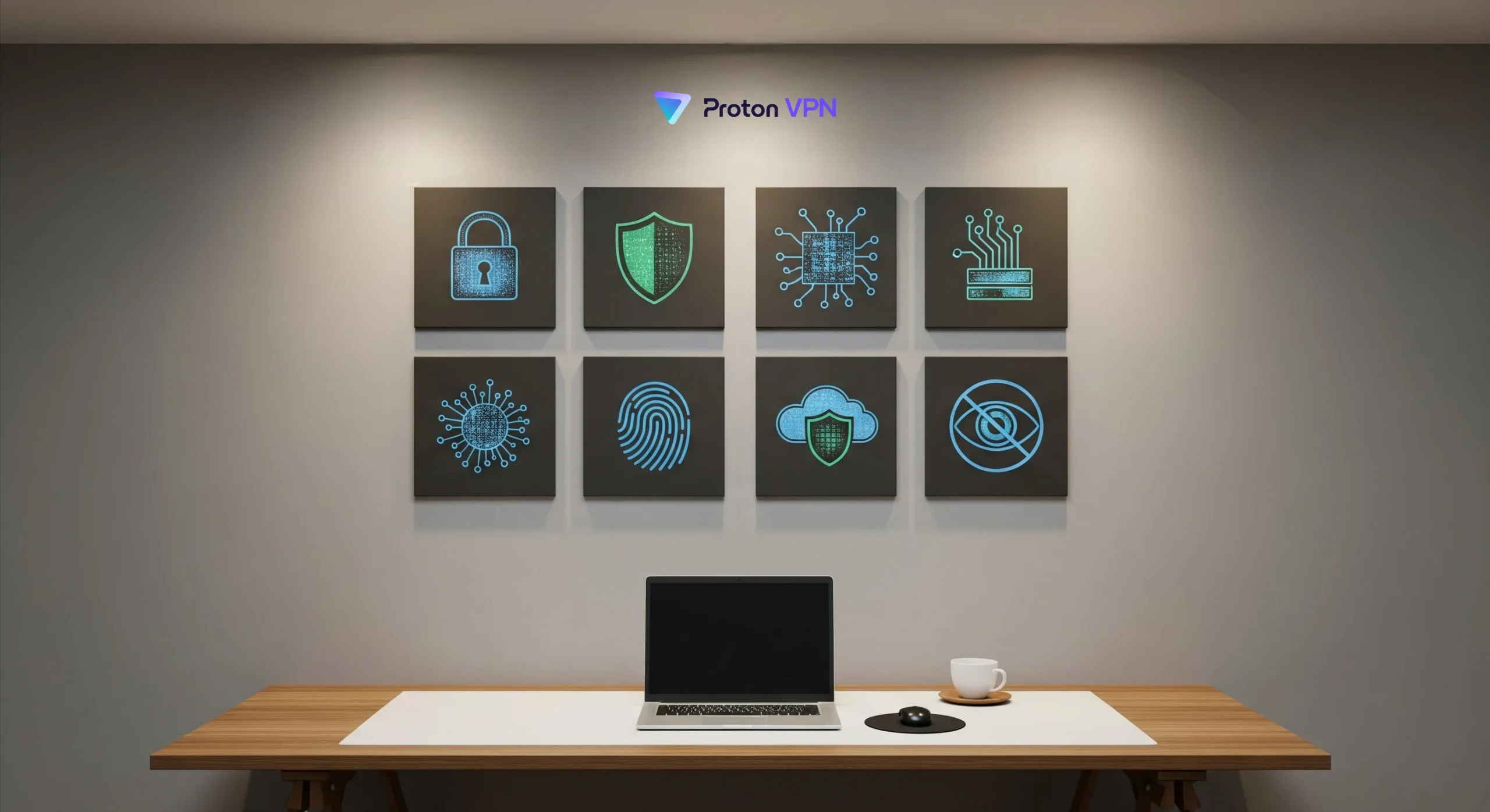 Home office with privacy protection icons